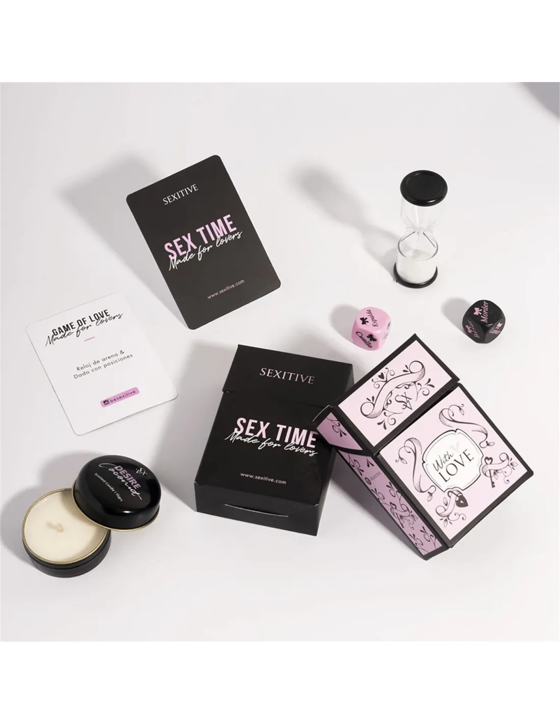 1 reloj de arena + dado con posiciones sexuales.