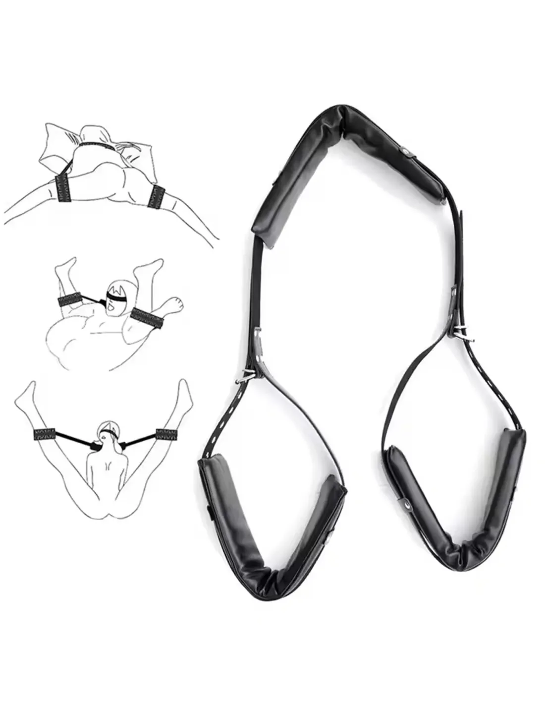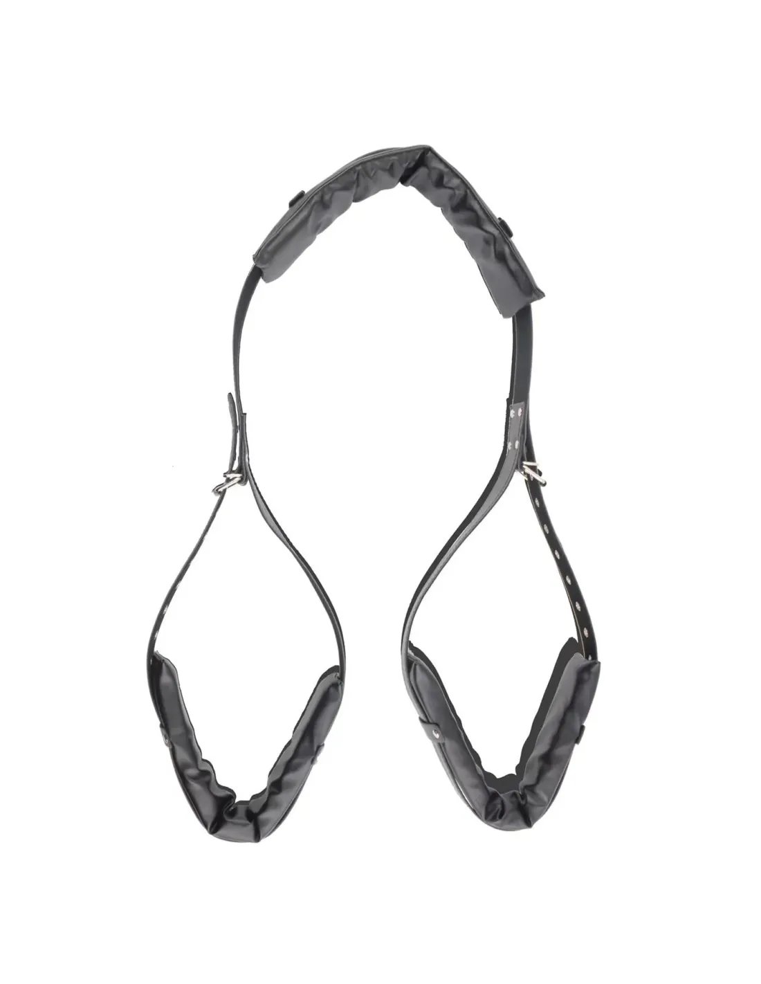 Arnes ajustable con almohadas cubiertas de cuero sintetico, para practicas de juego bondage