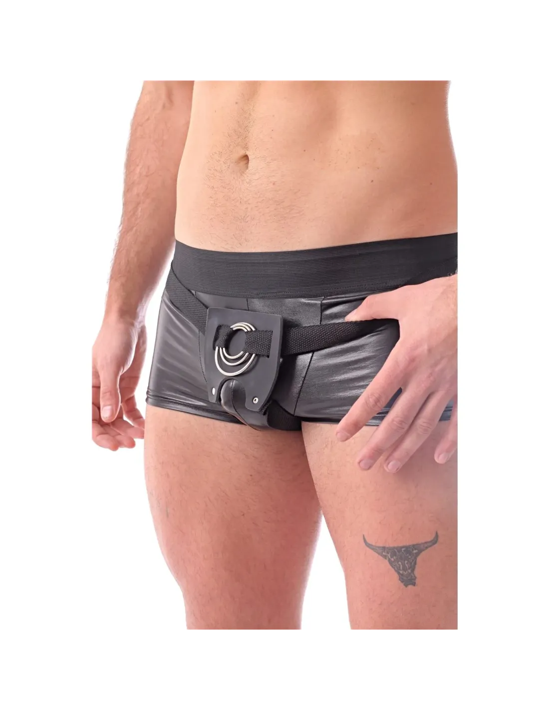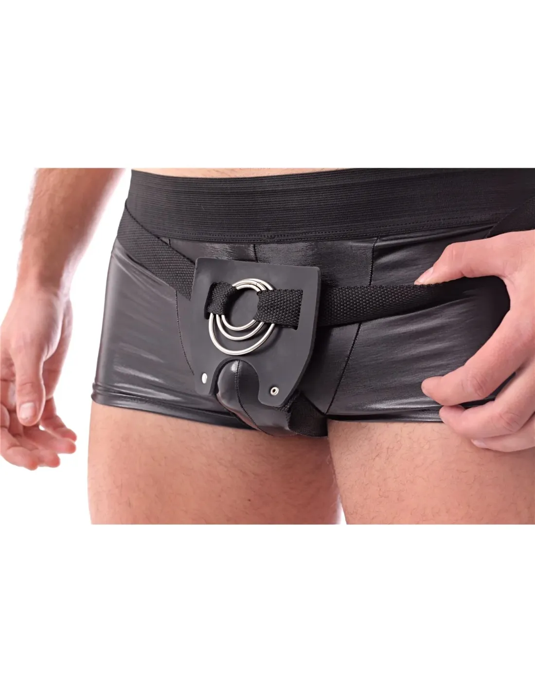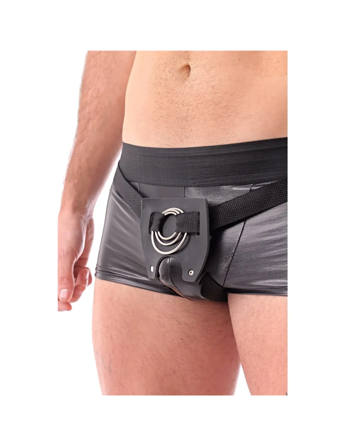 Cinturón-arnés masculino 3 en 1 con aros intercambiables - jugar en pareja doble penetración - negro y correa regulable. | Infar