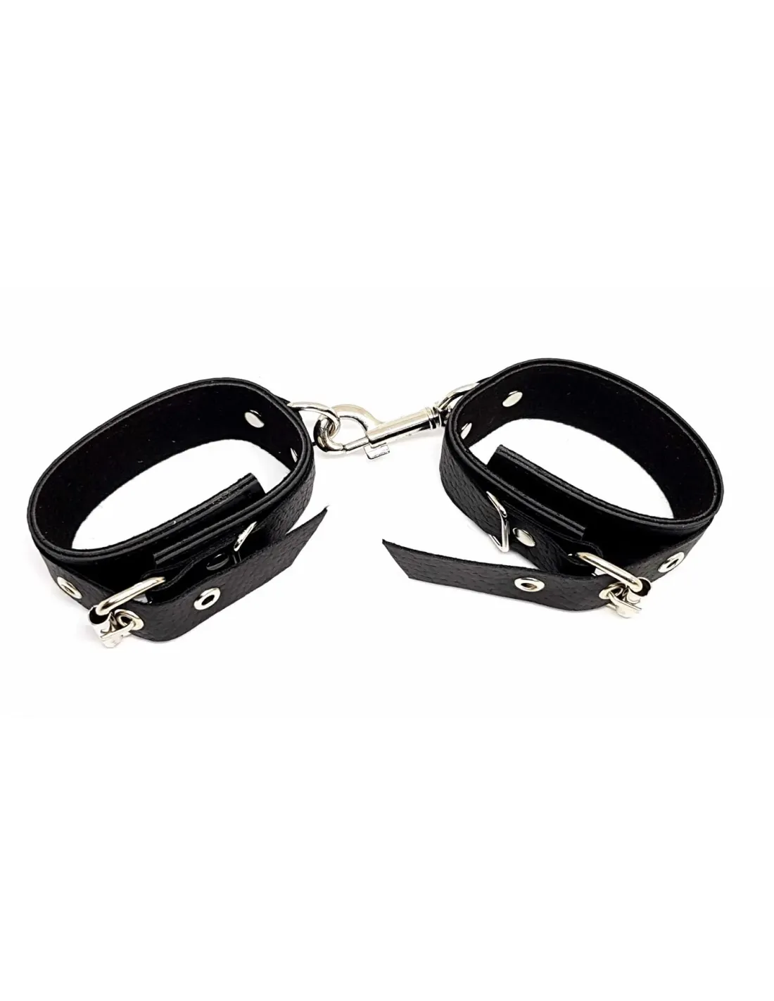 Resistentes y realizadas en cuero ecológico con fuertes herrajes de acero. Color plata.