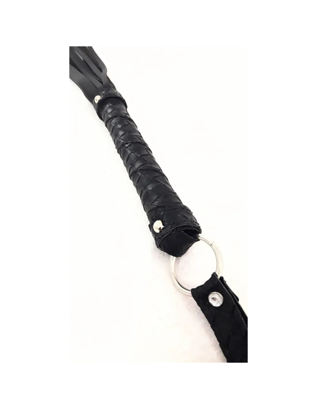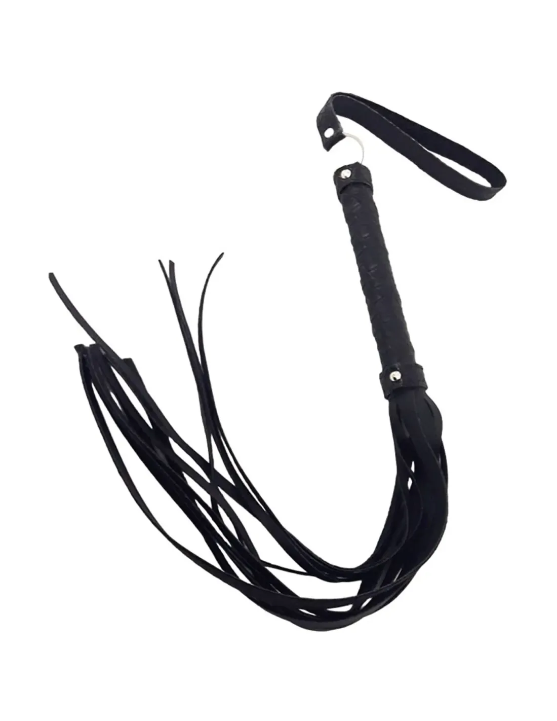 Tiene 80 cm de largo total. Con flecos en eco cuero que serán los autores del castigo picante. De ese hermoso sonido en la carne ardiente de la pareja.