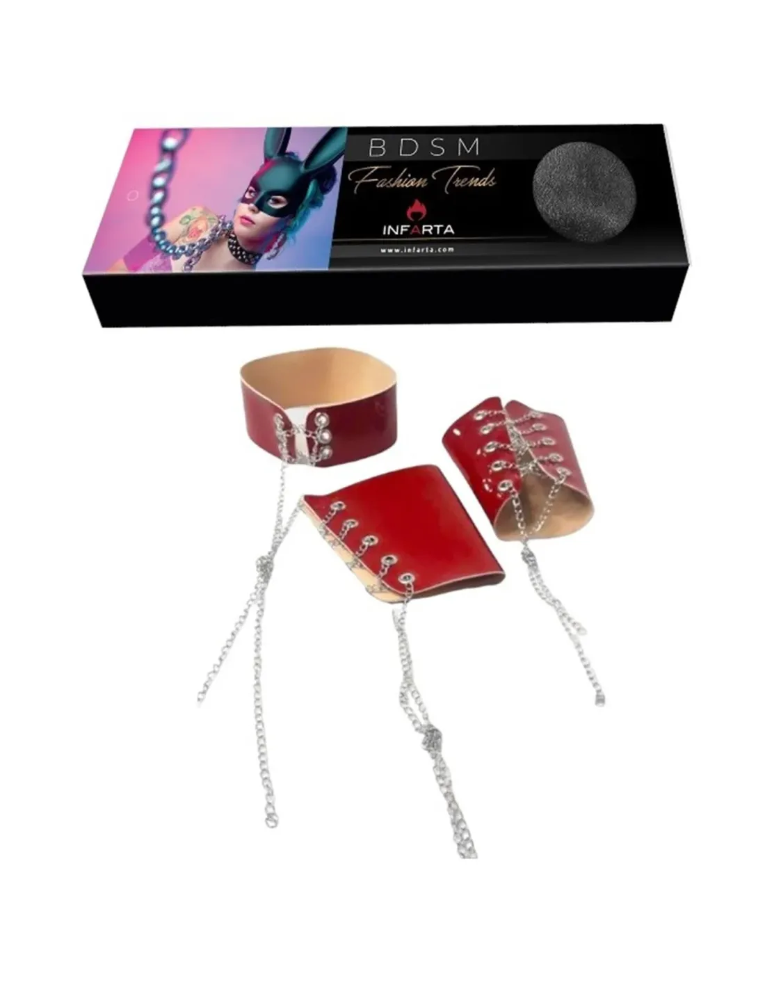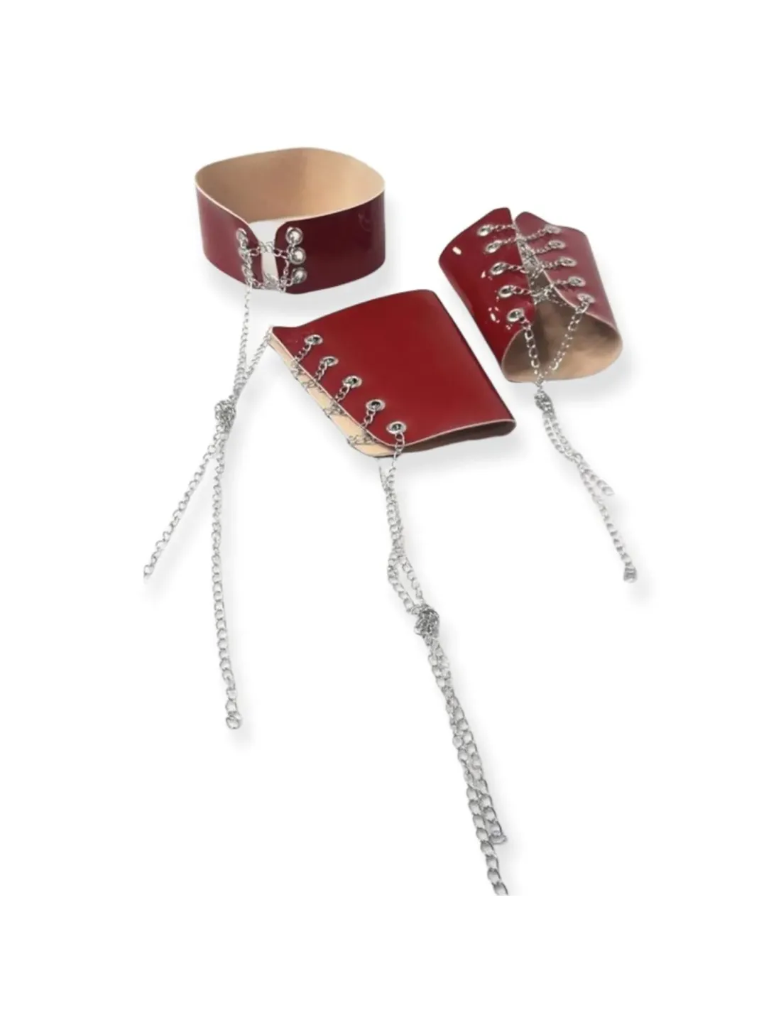 SET RIBBON MUÑEQUERA Y COLLAR ROJO