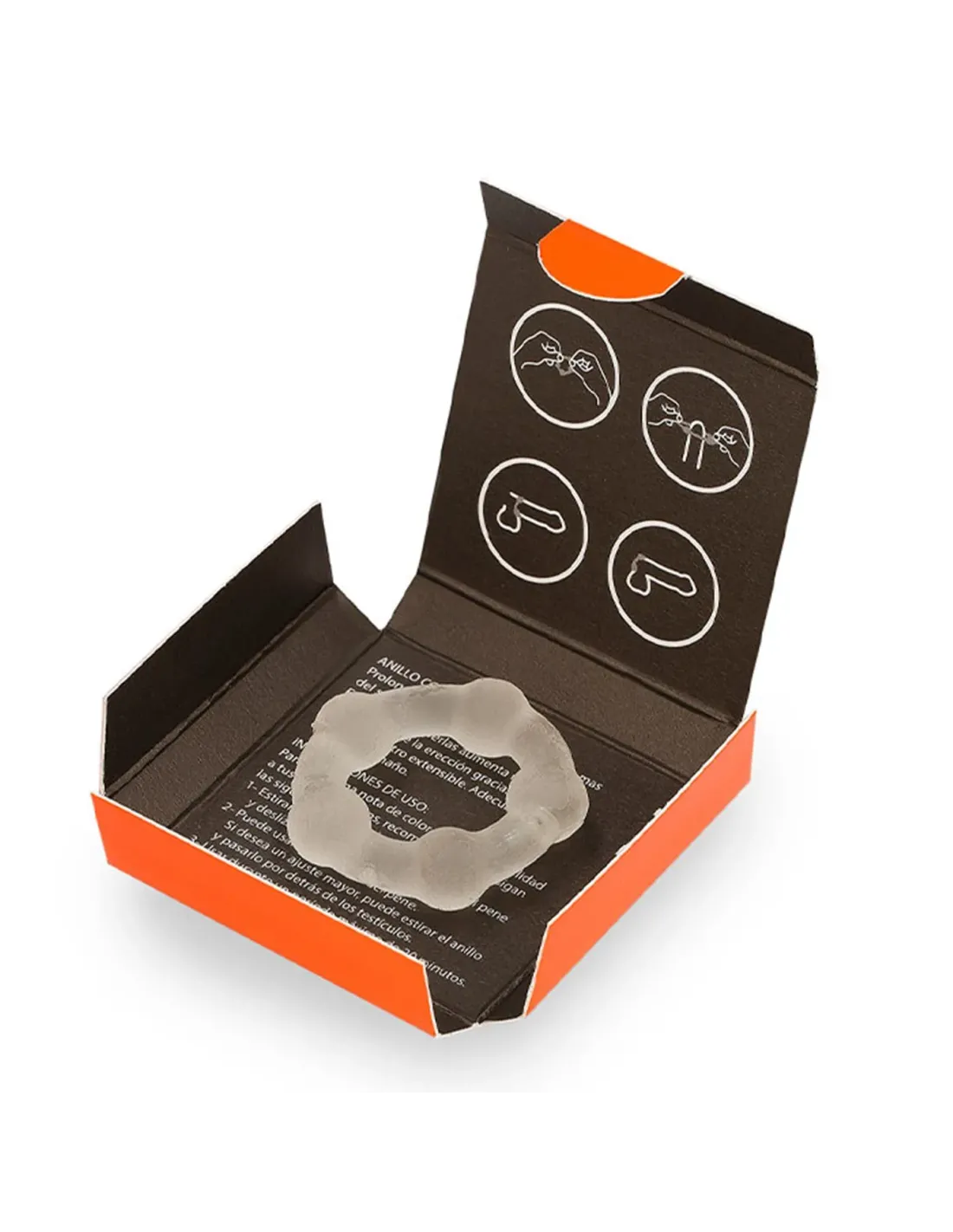 Este anillo con perlas aumenta notoriamente la duración de la erección gracias a su ajuste firme. Diámetro extensible. Adecuado para cualquier tamaño.