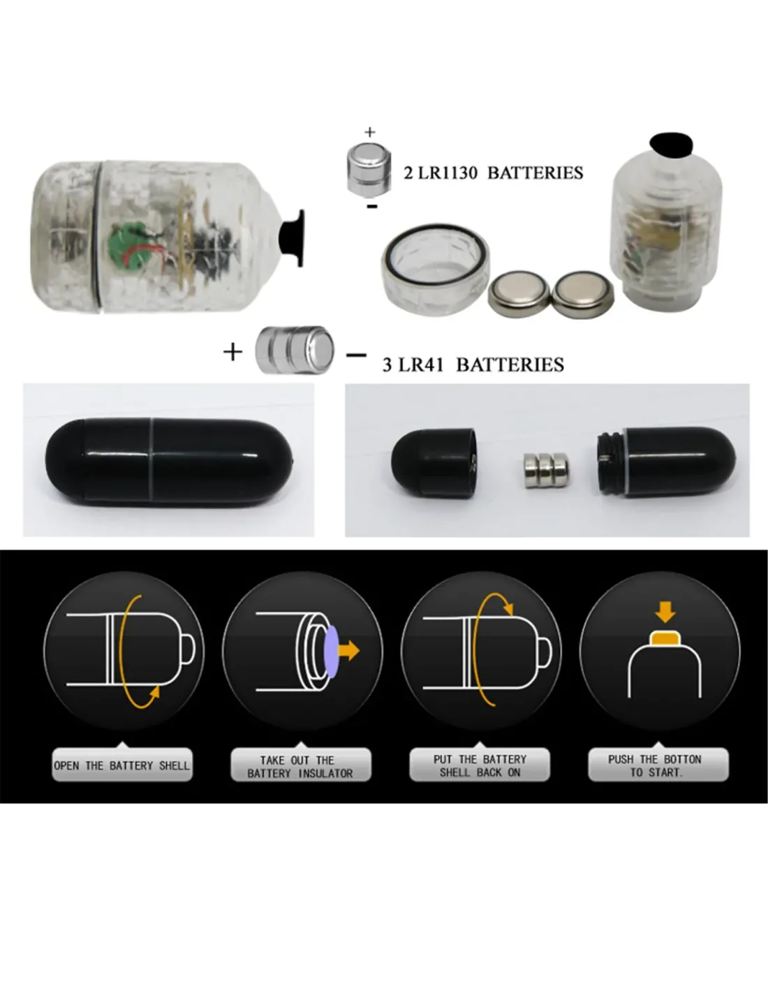 PILAS: 2 LR1130 para la bala pequeña, y 3 LR41 para la bala más grande.