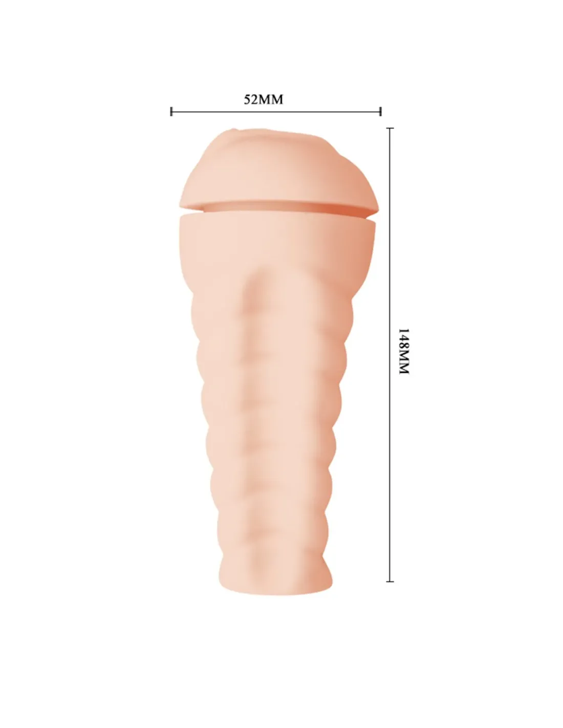 El interior, elaborado en material de tacto piel, ofrece una sensación cálida y envolvente. Cada canal interno y relieve está diseñado para imitar el contacto real, intensificando la experiencia con lubricante a base de agua. Perfecto para el juego en solitario o como complemento de pareja, ofrece control, limpieza sencilla y discreción total gracias a su tapa protectora.