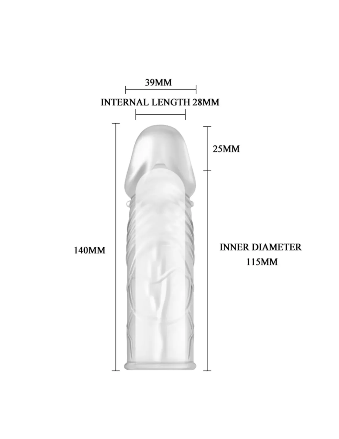 Sumá longitud y grosor con esta funda realista fabricada en material transparente, suave y elástico que se adapta perfectamente al pene. Su diseño detallado con glande y venas pronunciadas brinda una sensación natural para ambos.