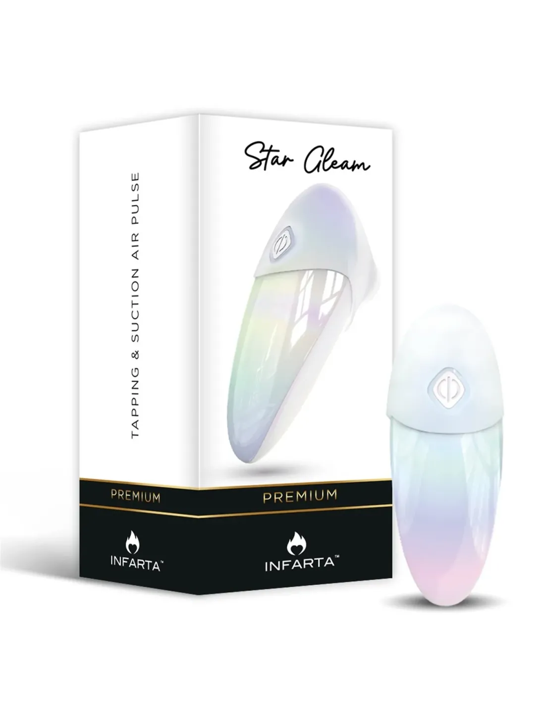 Atrévete a experimentar un nuevo nivel de placer con el Tapping & Suction AirPulse Star Gleam de Infarta. Este innovador juguete para adultos está diseñado para ofrecerte una experiencia sensorial única, combinando vibración y succión en un elegante dispositivo de color blanco tornasolado.