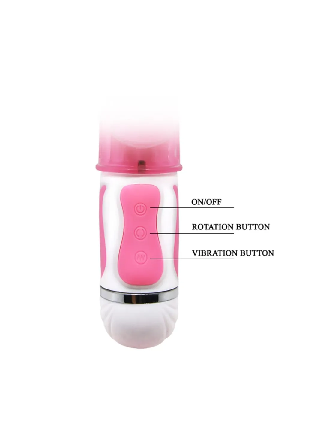 Ondulaciones elevadas especiales cerca de la parte superior del vibrador añaden el toque perfecto antes de que comiencen las 3 filas de cuentas que giran eróticamente; estas sensuales cuentas están montadas para garantizar un disfrute suave e ininterrumpido, y cubren la mayor parte del eje para masajear los labios internos y externos.