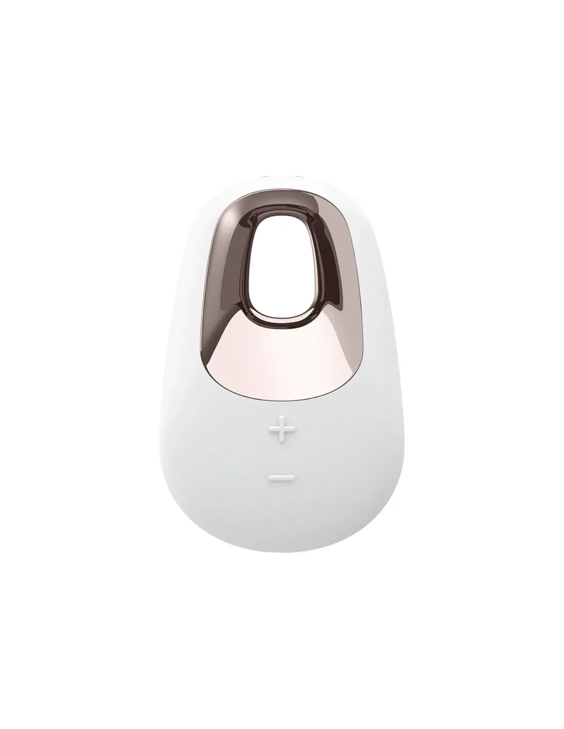 El diseño del White Temptation destaca por su elegante forma y los nobles colores blanco y oro rosa, de modo que recuerda más a un accesorio con estilo que a un dispositivo de bienestar sexual.