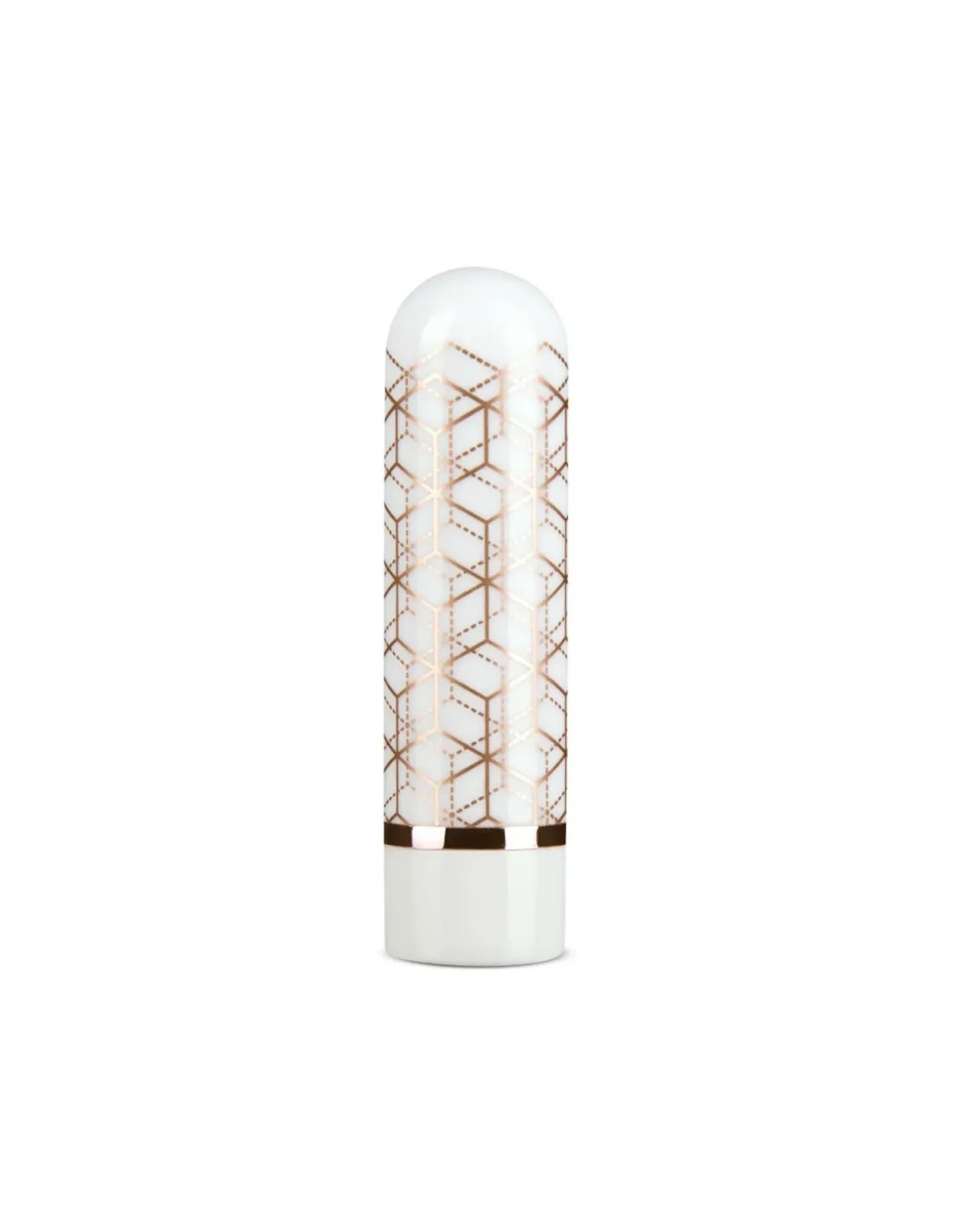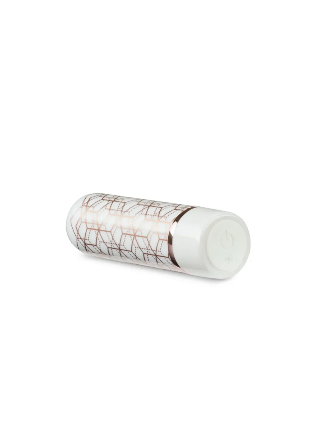 ¡La fuerza de la colección Glitzy Geo Bullet brillará! Los detalles en oro rosa de Geo aportan estilo a tu tiempo de juego. Descubra 10 potentes funciones de vibración dentro del cuerpo compacto de Glitzy Geo. ¡Discreto, fácil de almacenar y un compañero de viaje perfecto! Glitzy Geo es recargable, seguro para el cuerpo, a prueba de salpicaduras y fácil de limpiar.