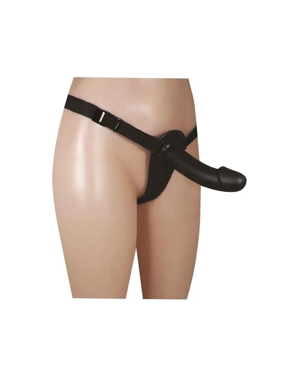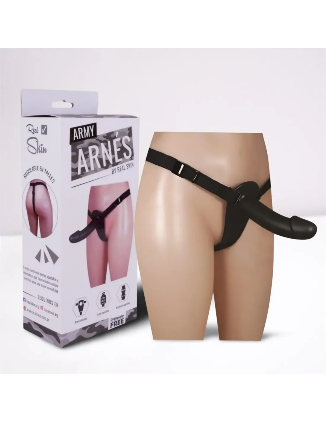 El arnés es regulable a cada cintura y el dildo es intercambiable.
