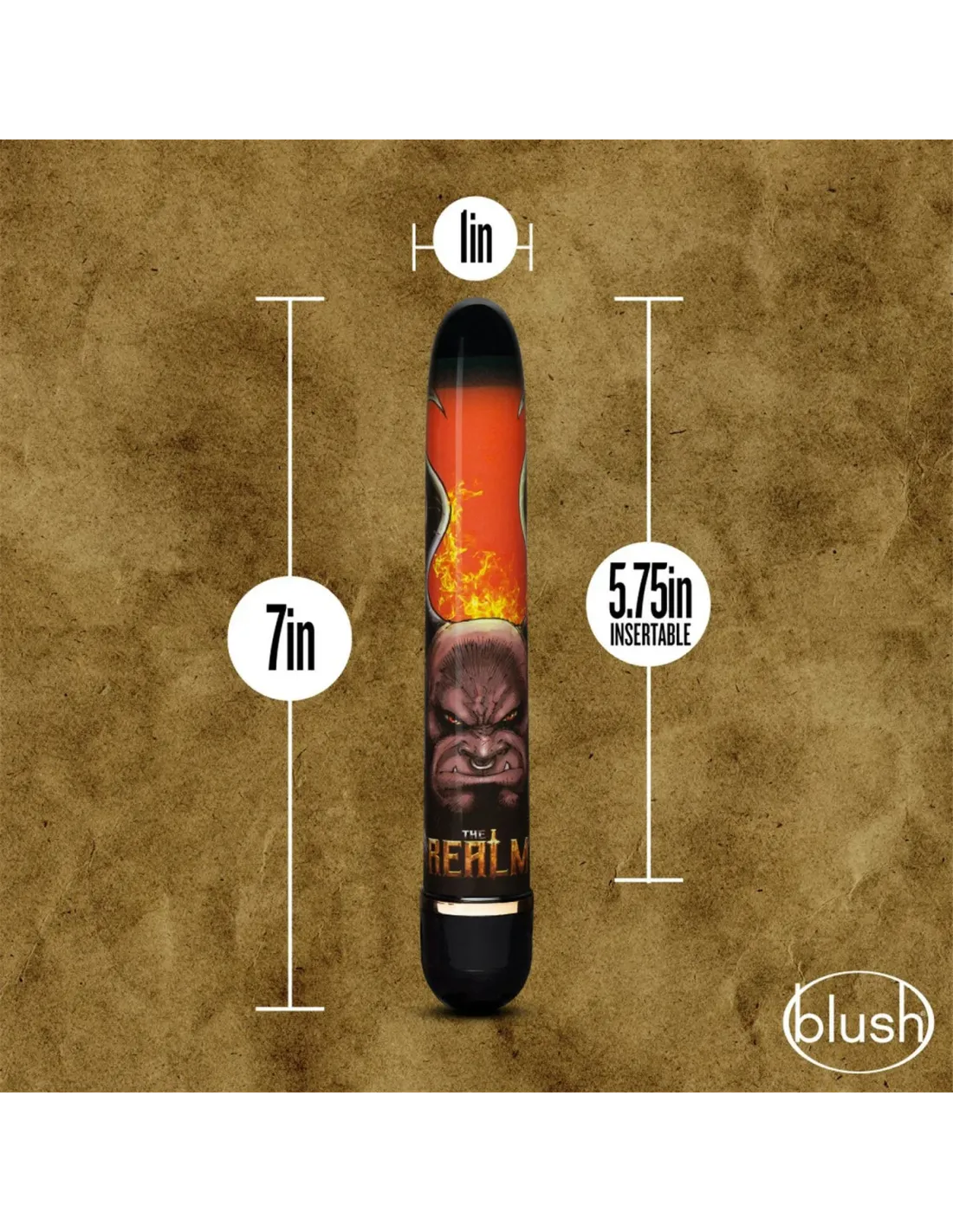 No es solo un mito ... ¡con The Realm tus fantasías épicas cobran vida! El Reino Minotauro te llevará a un laberinto de deseos. Atrévete a luchar con las vibraciones ajustables de varias velocidades del Minotauro. El Realm Minotaur es perfecto para jugar solo o en pareja, y tanto para uso interno como externo. Hecho de plástico ABS no poroso, The Realm Minotaur es seguro para el cuerpo, libre de ftalatos y fácil de limpiar. Requiere 2 pilas AA (no incluidas).